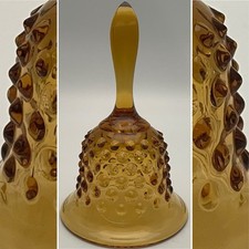 Fenton Art Glass Amber Hobnail Dinner Bell NO CLAPPER c1970s Made in USA 5.5"t