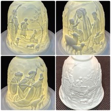 FENTON Vintage White Satin Christmas Nativity Scene Bell SIGNED Made In USA