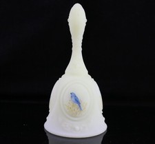 Vintage Fenton Custard Art Glass Bell Hand Painted Bluebirds by Charlotte Smith