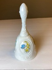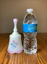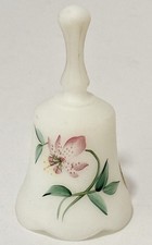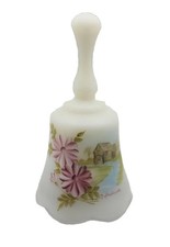 VTG Fenton White Satin Glass Love Poem Hand Painted Pink Flowers Musical Bell