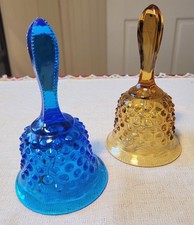 INSTANT COLLECTION Lot of 2 FENTON HOBNAIL Full Size BELLS COLONIAL BLUE + AMBER