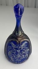 Blue Satin Fenton Art Glass Cabbage Rose Hand Painted Bell Vintage