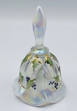 Fenton Iridescent Opalescent Glass Hand Painted Bell Purple Grapes 5.75” Signed
