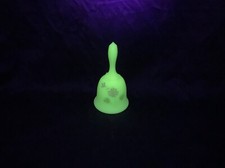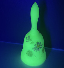 Vintage FENTON Tiara Hand-Painted Custard Satin Uranium Glass Bell Signed Glows
