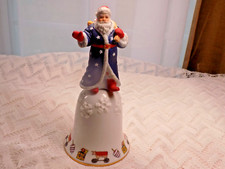 Bisque Antique Santa Bell - Santa With Toys W/box Flambro Vintage Large Bell