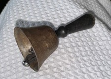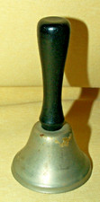 BELL VINTAGE CHILDS SCHOOL TOY SILVER METAL STEEL BLACK WOOD WOODEN HANDLE.