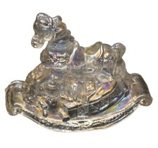 VTG Taiwan R.O.C. Iridescent Glass Christmas Toys Rocking Horse Candle Holder