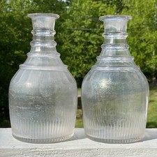 Pair of Antique Four Ring Glass Georgian - Victorian Decanter Bottles Wine