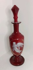 Antique Mary Gregory Cranberry Glass With Handpainted White Enamel Decanter
