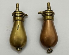 Victorian Style Miniature Brass & Copper Gun Power Small Bottle / Flask 2 Pc
