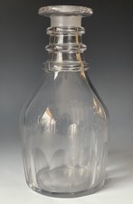 Antique 3 Three Ring Glass Georgian Decanter Bottle Wine Wheel Faceted 19th C.