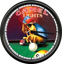 Joe Camel Playing Billiard Pool Table Advertising Game Cigarette Sign Wall Clock