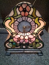 Vintage Tiffany Style Accent Mantel /Table lamp with Clock Working. Stunning