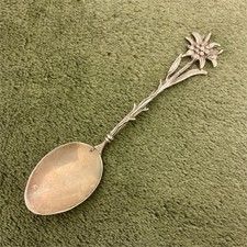 Antique Edelweiss Solid 800 Silver Collectible Spoon Floral Collectable