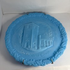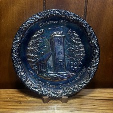 VTG Fenton 1971 Christmas in America Blue Satin Glass The Old Brick Church Plate