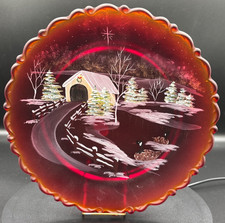 Fenton 1979 hand-painted glass plate with a winter scene.