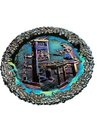 Vintage Fenton Art Carnival Glass Iridescent Plate Two Horned Church Ohio OH