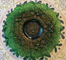 ART GLASS PLATE IRIDESCENT Fenton Carnival Glass RARE GREEN 3 Fruits