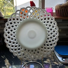 Fenton Mid 20th-Century Shallow Large Milk Glass Bowl, PatternC- Lacy Edge Colec