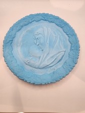 Vtg Fenton Frosted Blue Mother's Day Plate 1977 Madonna and Child w/ Pomegranate