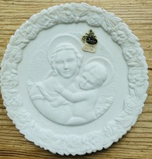 Vtg Fenton Blue Satin Mother's Day Plate 1971 Madonna with the Sleeping Child