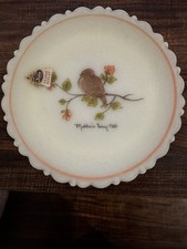 Vintage Fenton Bird Hand Painted Signed Mothers Day Plate 1980 Uranium Glows, 8”