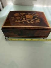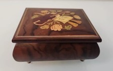 Vintage Reuge Wood Jewelry Music Box, High Quality Intricate Design O Sole Mio