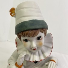 RARE VINTAGE PAUL SEBASTIAN MUSIC BOX PORCELAIN CLOWN PLAYING FLUTE W/DOG