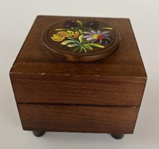Vintage West Germany Wooden Wind Up Music Box Floral Inlay Trinket Box Handmade