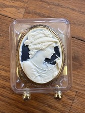 Small Vintage Cameo on Clear Acrylic Case Music Box Plays "The Entertainer"