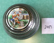VINTAGE ANTIQUE POWDER PUFF METAL TRINKET MUSIC BOX. Powder Pad Included
