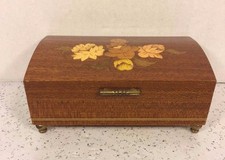 Vintage Italian Reuge Inlay Wooden Swiss Music Box Floral Plays Blue Danube