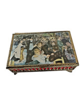 Vintage Schmid Music Jewelry Box Brass Fabric Japan RENIOR "MOULIN DE LA GALLETE