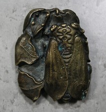 Antique Asian Solid Brass Cicada Sculptural Scroll Weight Paperweight Stamped