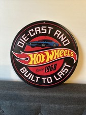 Hot Wheels Die-Cast and Built To Last Embossed 12" Round Sign New