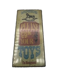 Notice Please Pick Up Your Toys Wooden Wall Plaque Vintage Wallace Berrie & Co.