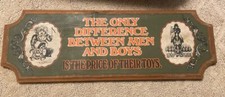 Vtg Wood Wall Hanging Man Cave Men & Boys Price Of Toys Sign.