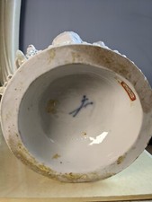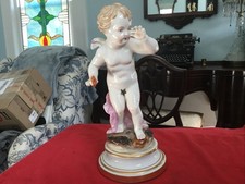 Antique Meissen Porcelain 8” Cupid Figure Of Angel Holding A Heart.