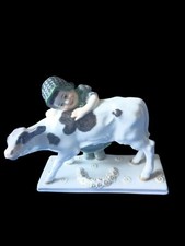 Antique Jugendstil Meissen Porcelain Girl w/ Cow Figurine Figure Porzellan Figur