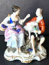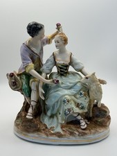 Dresden Meissen Style Hand Painted Porcelain Courting Couple with Lamb & Flowers