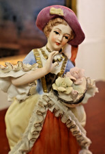 1915s Antique German Volkstedt Flower Party Porcelain Lace Figurine 8"
