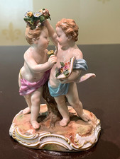 Antique Meissen Porcelain Figurine Cupid Putti Cherub Pair