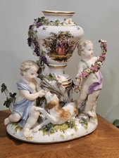 Antique Victorian Vase Boy Apples Meissen Style Figurine Figures Vintage