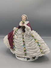 Antique Austria Royal Vienna Porcelain Lace Figurine Lady in Crinoline Dress 8"