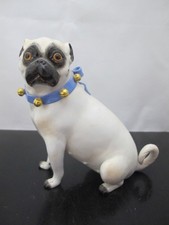 MEISSEN Porcelain PUG Dog with Blue Collar & Gold Bells Figurine Statue