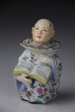 Unique Antique Meissen Seated Child Holding Book Ink Well