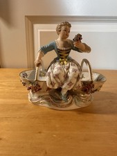 Antique Meissen Porcelain Figurine Woman w/ Floral Basket- Nice!