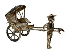 Vintage Mini Rickshaw Asian Chinese Japan Silver Metal Art Pedicab Hand Crafted