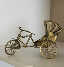 Vintage Golden Brass Rickshaw Oriental Tricycle Toy Sculpture / Figurine 9”x5.5”