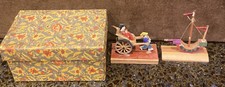 Vintage Hand Carved Wooden Miniature Asian Figurines Lot Rickshaw Boat Diorama